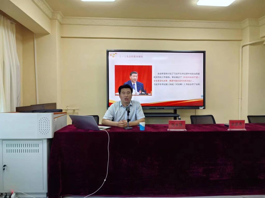 马利强、乌永胜老师分别围绕“党的二十届三中全会是关键时期召开的一次十分重要的会议”、“深入学习领会习近平总书记在党的二十届三中全会上的重要讲话精神”、“全面准确理解《决定》提出的进一步全面深化改革重大举措”、“深入贯彻落实自治区党委十一届八次全会精神,书写中国式现代化内蒙古新篇章”等方面进行了系统解读,宣讲内涵丰富、深入浅出,具有很高的政策理论性和实践指导性,为学院干部师生进一步深入学习领会党的二十届三中全会精神打下坚实的理论基础。