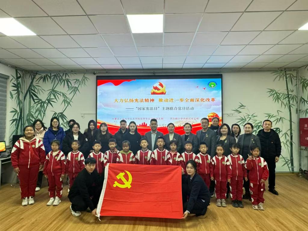 12月4日是第十一个国家宪法日,为深入贯彻党的二十届三中全会精神,加强宪法学习宣传,落实“大力弘扬宪法精神,推动进一步全面深化改革”宪法宣传周主题,永利yl23411no1法学专业学生党支部党员赴呼和浩特市回民区贝尔路小学与贝尔路小学西校区党支部开展主题联合党日活动。