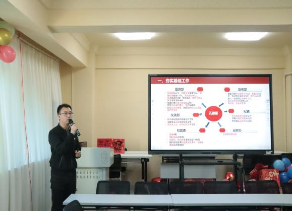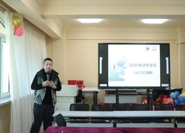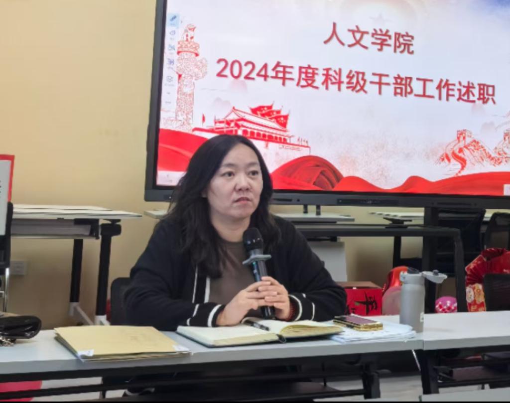 述职大会上,学院各教学系、办、中心11名科级干部聚焦政治思想建设、履职能力、工作成效、突出业绩、存在的问题及下一步计划等方面采用PPT汇报形式依次述职,学院党委书记马利强、院长苏丽娜分别做点评总结。