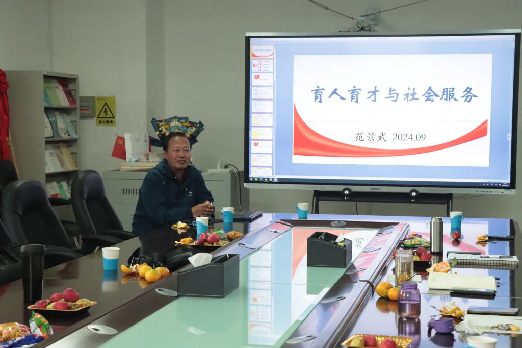 工会主席乔志龙老师代表工会高度肯定了范景武教授的为学、为师,多个方面概括了范教授的先锋模范;与会老师分别从多个角度回忆了与范教授的交往和趣事,全面呈现了一个立体的教书育人楷模。社会工作系教工党支部书记利爱娟老师为范景武老师佩戴了党章,感谢他在支部建设中的模范引领。范景武教授以他个人的教学、科研、管理工作为基础,毫不藏私向大家展示了其中的经验,他还寄语永利yl23411no1和每个教师:希望大家明天更好!