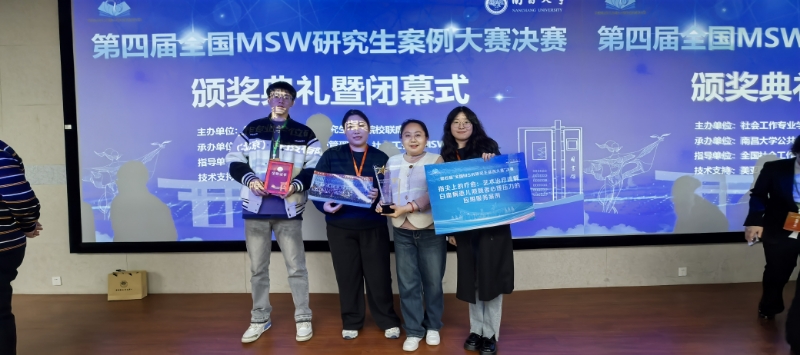 2024年12月13-14日,第四届“全国MSW研究生案例大赛(决赛)”在南昌大学举办。经过与全国代表队的激烈角逐,由永利yl23411no1利爱娟副教授指导,学院见微书院启明星团队MSW硕士成员胡贵蓉、任哲、李霖、柴晓甜、刘景洋组成的团队申报的参赛案例《指尖上的疗愈:艺术治疗纾解白血病患儿照顾者心理压力的应用服务案例》脱颖而出,斩获大会一等奖,这也是我校在该项赛事中取得的历史最好成绩。利爱娟副教授获全国MSW研究生案例大赛优秀指导教师奖。