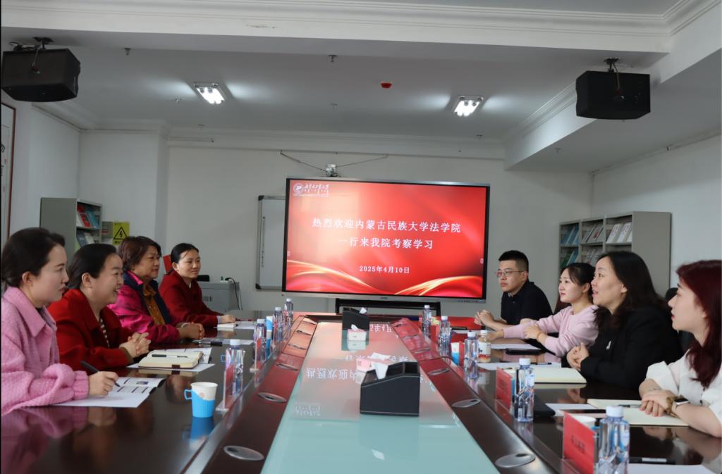 4月10日上午,内蒙古民族大学法学院副院长付淑娥、宪法与国际法教研室主任曲海月、模拟法庭实验室主任史秀娟、教科研办公室主任白雅晰一行人在来永利官网进行调研考察。永利官网院长苏丽娜、法学系系副主任刘晗钰、法学系党支部书记李敏轩、法学系教师毕力格图、任星瑞参加座谈。苏丽娜院长首先对内蒙古民族大学法学院的到来表示热烈欢迎,并详细介绍了永利yl23411no1的发展历程、学科建设、师资力量、人才培养以及教学科研成果等方面的情况。