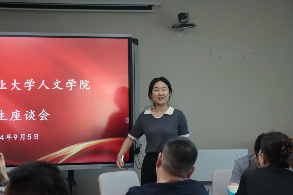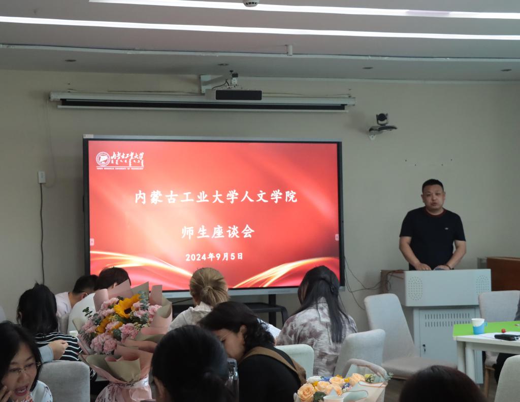 师生座谈会上,乌云、廉婷婷、海涛、李慧英等老师分别立足个人教书育人体会和教学、科研、管理育人经验等,就如何做好教学、教务、学生管理工作等结合自身工作实际做分享,围绕促进师生个人成长、学校发展等方面进行交流座谈。学生代表孟木其尔、王艺颖分享自己在大学校园里的成长感受,向老师们表达深深的敬意和节日的祝福。