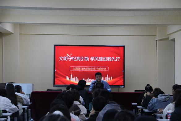 11月14日,永利yl23411no1举办了“文明守纪我引领 学风建设我先行”主题团日活动暨学生干部大会,学院党委副书记、副院长武新春,学生工作办公室李慧英以及70余名学生干部代表参加了本次活动。